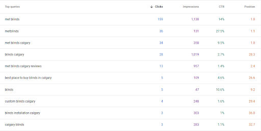 - “blinds calgary” → ranking improvement